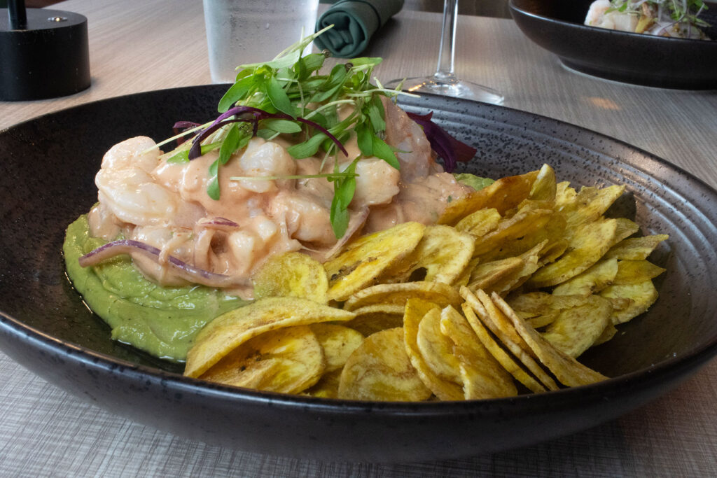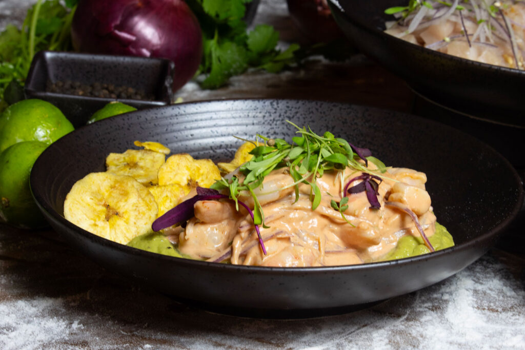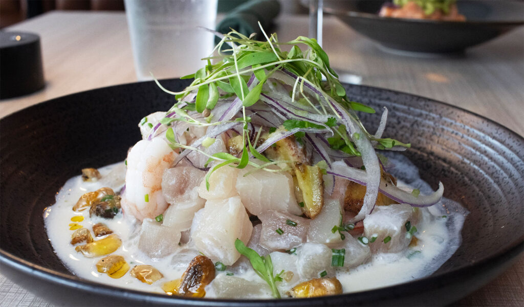 WHITE FISH, SHRIMP, TIGER’S MILK, RIPE PLANTAIN, CANCHA CORN AND MORITA CHILI OIL